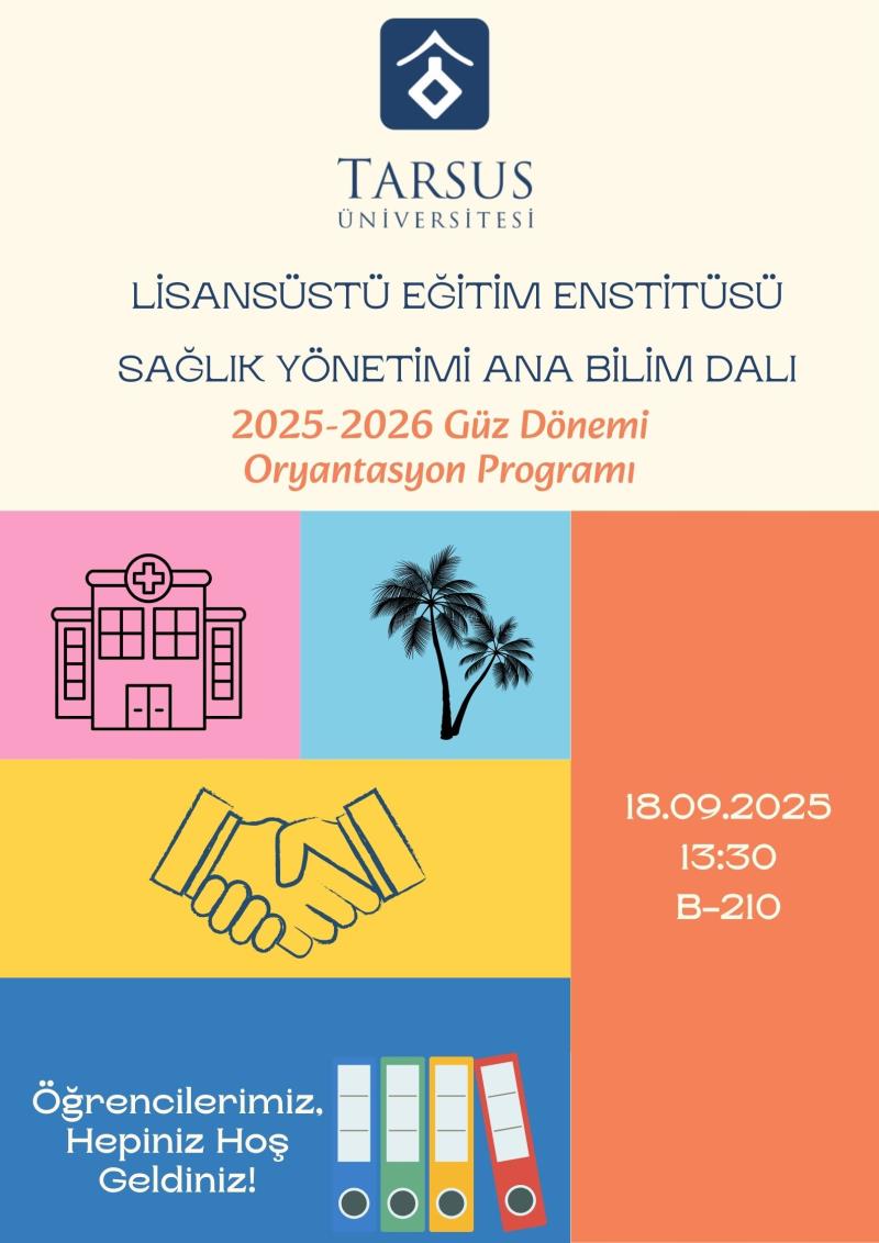 2025-2026 Güz Dönemi için bölümümüz lisans ve yüksek lisans öğrencilerine yönelik oryantasyon programı düzenlenecektir. Oryantasyona ilişkin bilgiler ilgili afişlerde yer almaktadır.