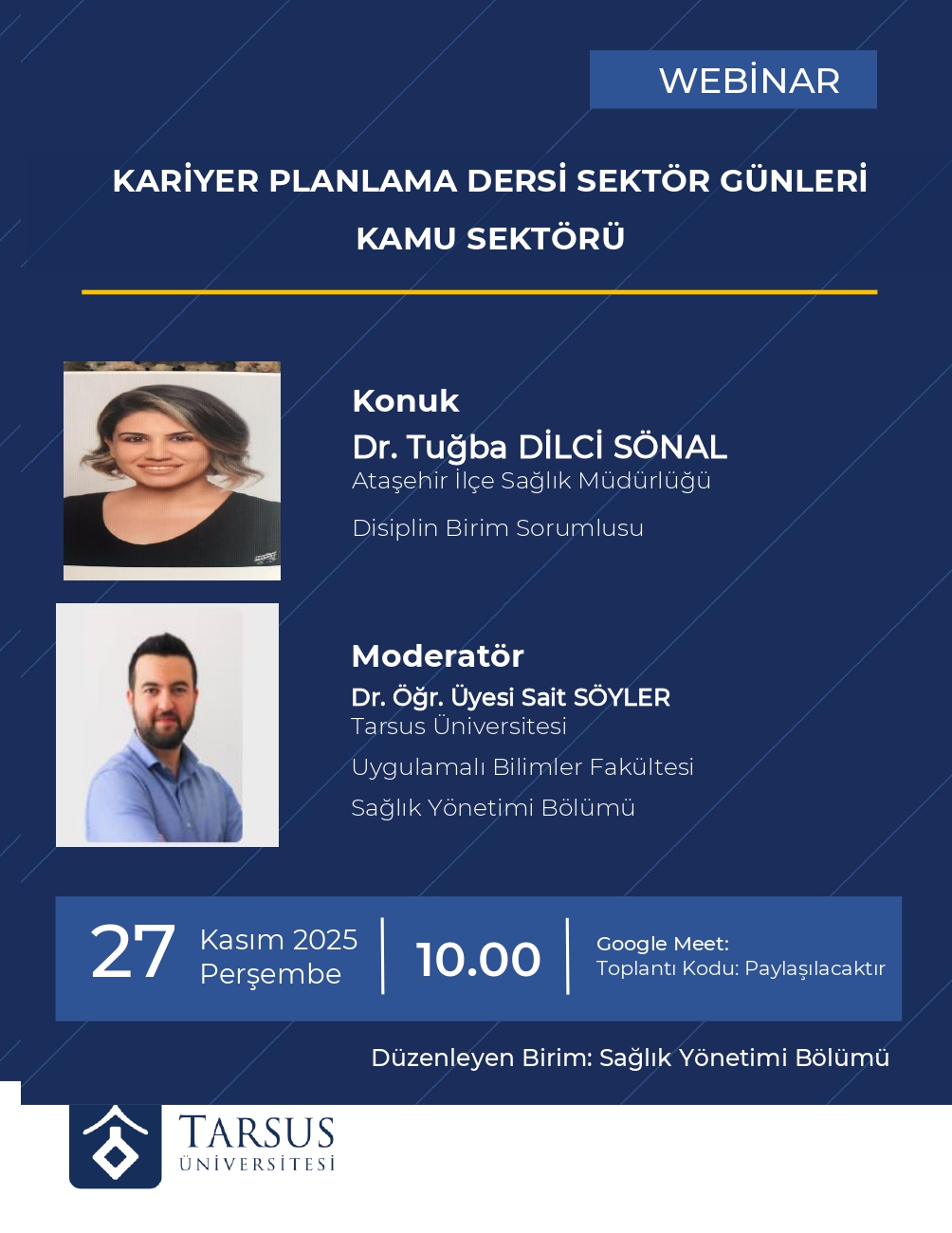 Kariyer Planlama dersi kapsamında düzenlenen toplantılarda bu haftanın konuğu Sayın Dr. Tuğba Dilci Sönal oldu. Kendisi yönetim tecrübelerini bizlerle paylaştı.